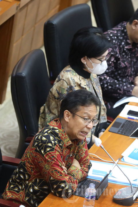 Menteri Kesehatan (Menkes), Budi Gunadi Sadikin (kiri) memberikan paparan saat mengikuti rapat kerja bersama Komisi IX DPR RI di Kompleks Parlemen, Senayan, Jakarta, Selasa (24/1/2023). Rapat tersebut membahas upaya penanganan Covid-19 setelah pencabutan status PPKM, khususnya pelaksanaan program vaksinasi Covid-19.