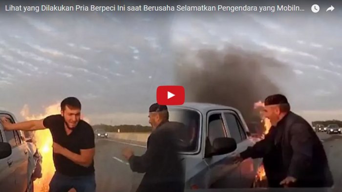 Pria Berpeci Berusaha Selamatkan Pengendara yang Mobilnya Terbakar