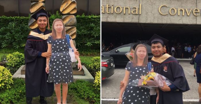 TRIBUNNEWS.COM - Dalam sebuah posting yang menjadi viral awal pekan ini di Twitter, lulusan universitas Filipina, Paulo John, memposting foto dirinya berpose di samping gabus bergambar ibunya.