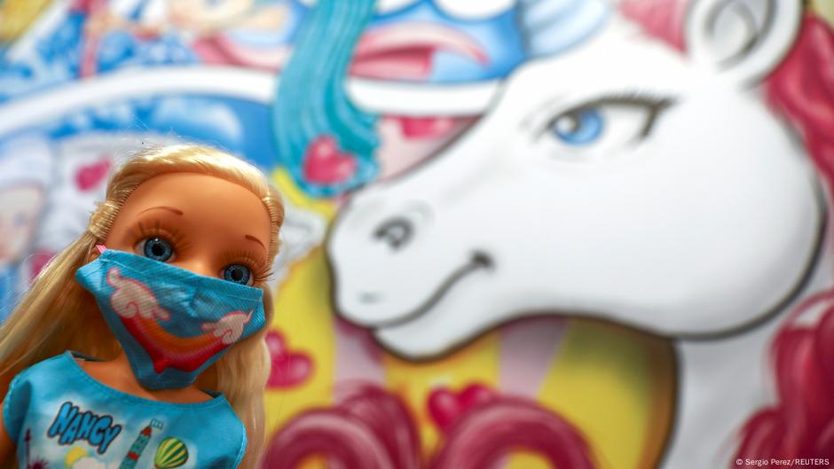 Di toko mainan di Spanyol, beberapa boneka Nancy yang terkenal dari produsen mainan Famosa, kini mengenakan masker. Satu set boneka dijual lengkap dengan alat penguji virus yang dapat mendeteksi infeksi pada mainan tersebut. Jika boneka “terinfeksi” anak-anak bisa menyembuhkannya dengan menggelitiknya.