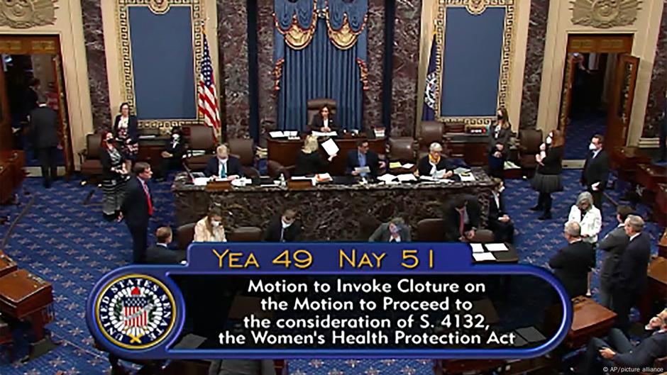 Senat terdiri dari 50 anggota Partai Demokrat dan 50 anggota Partai Republik. Hampir seluruh anggota Demokrat mendukung Undang-undang Perlindungan Kesehatan Perempuan yang menjamin hak aborsi nasional. Sementara semua anggota Republik solid menentang tindakan itu. Hasil voting berakhir dengan selisih tipis, 51 suara menentang dan 49 suara mendukung RUU tersebut.