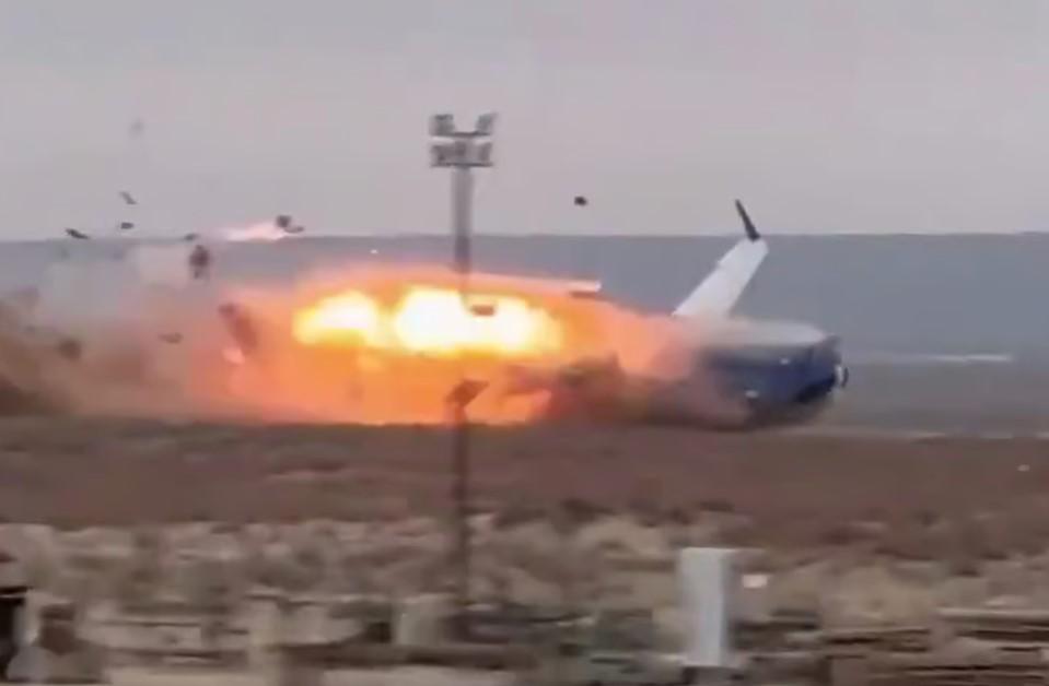 Pesawat penumpang milik Azerbaijan Airlines jatuh di dekat Aktau, Kazakhstan. Pesawat jatuh dari langit dan terbakar saat menghantam tanah,