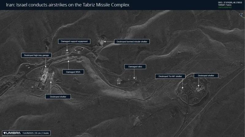 Citra radar dari Umbra menunjukkan kehancuran besar di kompleks rudal Tabriz.