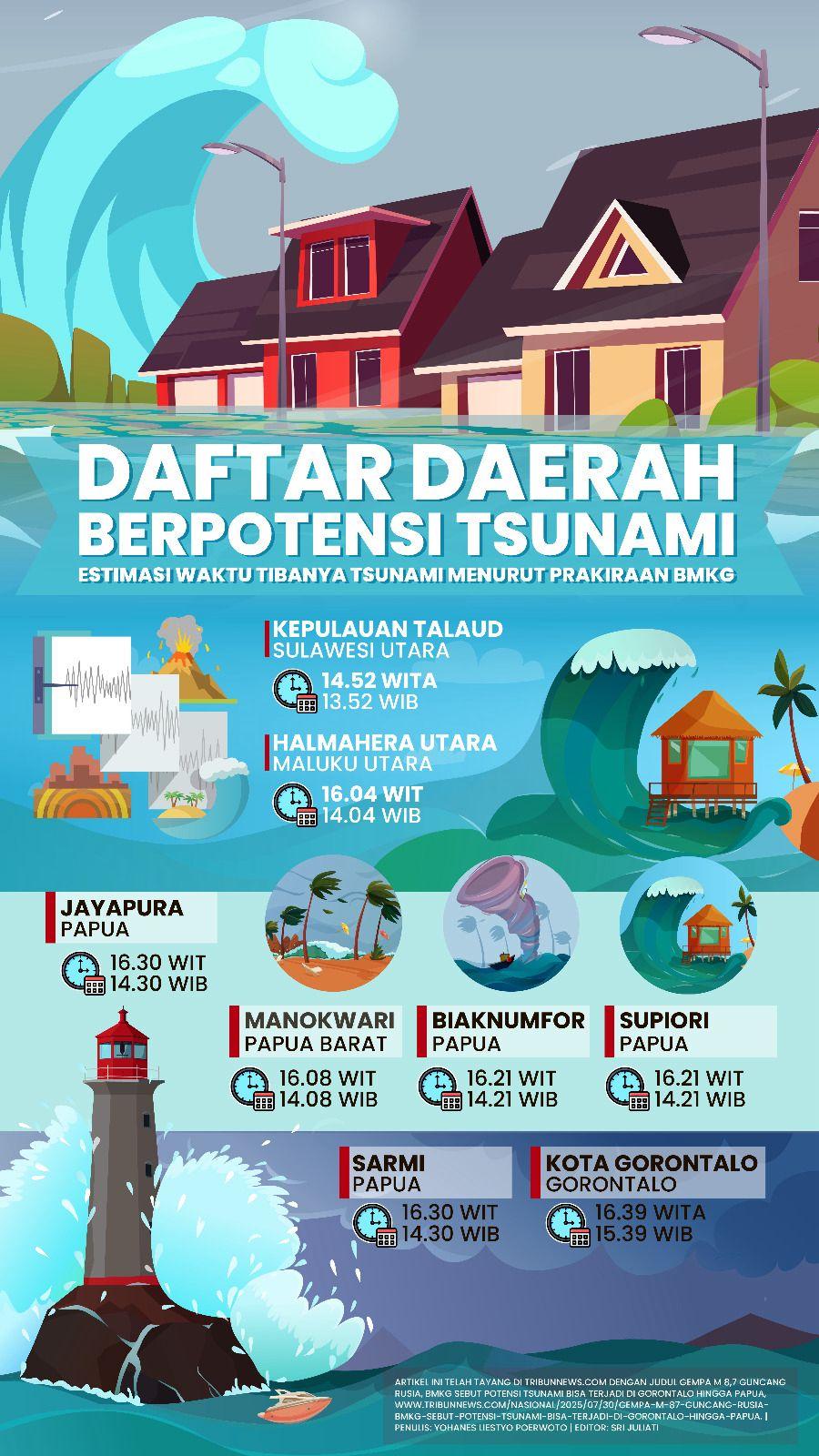 Selain itu akibat gempa Magnitudo 8,8 di Rusia sejumlah negara tersebut mengumumkan peringatan dini tsunami, termasuk di Indonesia.