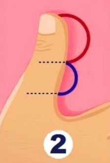 2. Ibu jari bagian atas lebih panjang dari bagian bawah