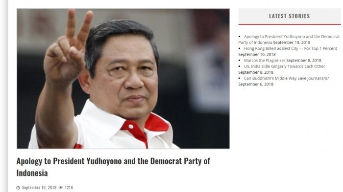 TRIBUNNEWS.COM - Ketua umum Partai Demokrat Susilo Bambang Yudhoyono (SBY) menanggapi permintaan maaf dai Asia Sentinel.