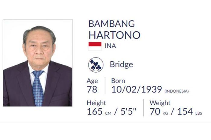 Bambang diketahui akan mewakili Indonesia dalam cabang olahraga bridge.