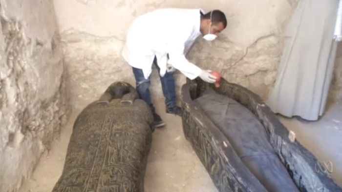Dua sarkofagus yang masing-masing berisi mumi telah ditemukan. Lebih jauh, semuanya berada dalam kondisi yang sempurna.