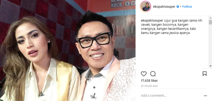 Satu pekan Jessica meninggalkan Indonesia. Eko sudah kepalang rindu. Kerinduannya itu ia lampiaskan melalui akun Instagram pribadinya. Ia mengunggah foto dirinya bersama Jessica.