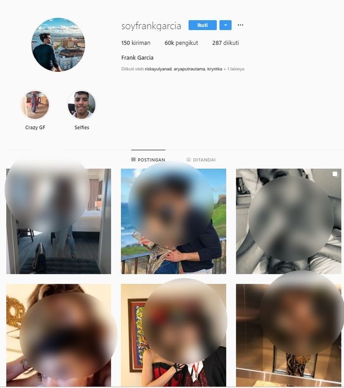 Setidaknya pada Jumat (31/5/2019) ini, Frank telah mengunggah 28 foto dan video menunjukkan kemesraannya dengan gadis 26 tahun itu.