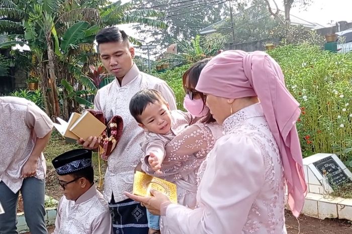 TRIBUNNEWS.COM - Pada momen Lebaran, Gala Sky diajak oleh kakeknya, Haji Faisal, berziarah mengunjungi makam orangtuanya, Vanessa Angel dan Bibi Ardiansyah.