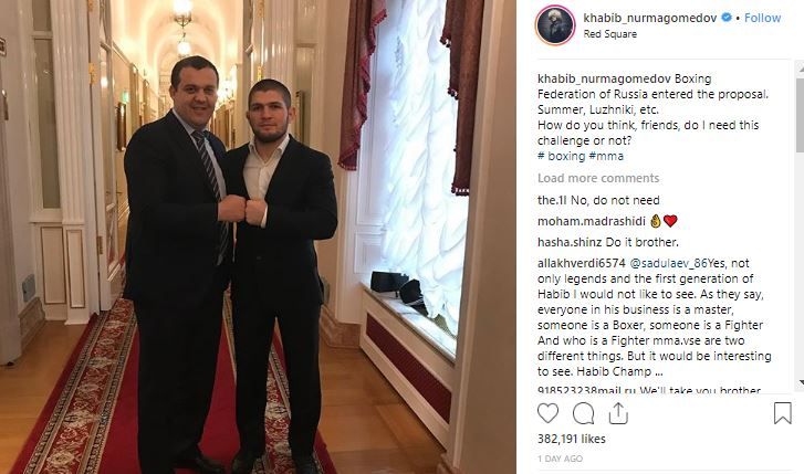 Tawaran untuk pertarungan tersebut telah diajukan Khabib kepada Federasi Tinju Rusia.