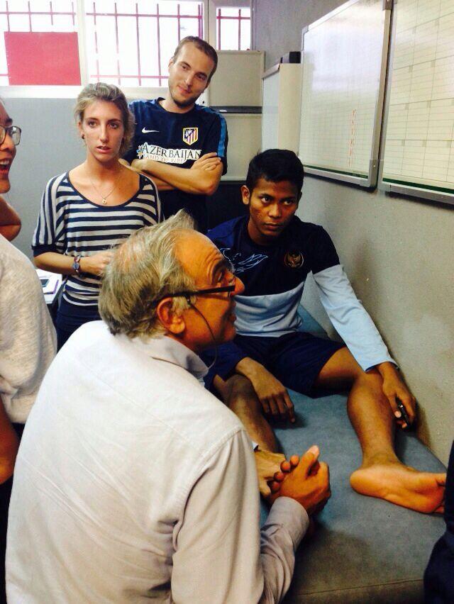 TRIBUNNEWS.COM, VALENCIA - Dua orang punggawa Tim Nasional Indonesia U-19 Akhwan Seto dan Zulfiandi yang mengalami cedera menjalani perawatan oleh tim dokter juara Liga Spanyol Atletico Madrid, di Madrid, Spanyol.