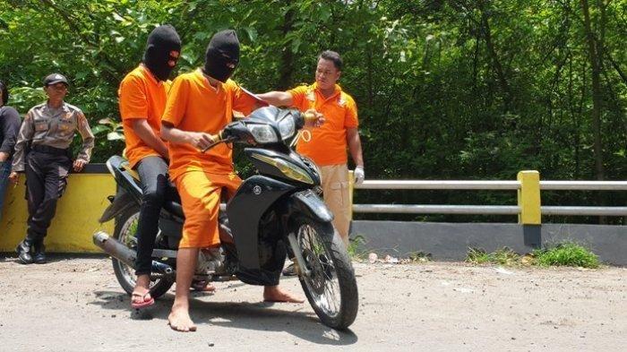 Dua pelaku pembunuhan terhadap Ardyo Wiliam Oktavianto (13), siswa kelas IV SDN Ketemas Dungus menjalani rekonstruksi kejadian.